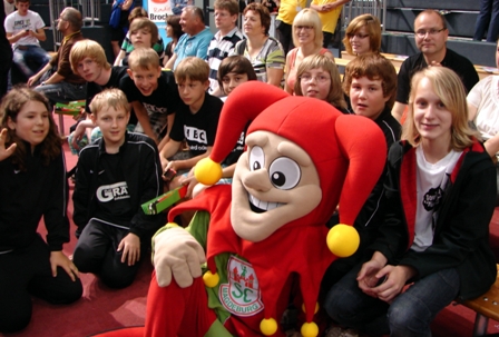 Die MJD reiste zum Saisonabschluß zum Bundesligaspiel SC Magdeburg : MT Melsungen.Für viele Kinder aber auch Eltern war es der 1. Besuch eines Bundesligaspiels im Handball.Mit Plätzen direkt am Spielfeld konnte die Jungs genau zusehen, wie sich die Bundesligaspieler Erwärmen und sich das eine oder ander abschauen.Beeindruckend war die Stimmung in der GETEC Arena die mit über 6000 Zuschauern gut gefüllt war.Aber auch das Spiel bietete Spannung pur.Bis zur 50.Minute verlief die Partie ausgeglichen, doch am Ende setzte sich Magdeburg mit 28:25 durch.Nach dem Spiel ging es dann auf Autogrammjagd.Geduldig gaben die Bundesligaprofis den Kid`s ihre Autogramme. Ein schöner Saisonabschluss der allen in guter Erinnerung bleiben wird.Jetzt geht es neu motiviert in die neuen Altersklassen für die ich alle viel Erfolg wünsche.